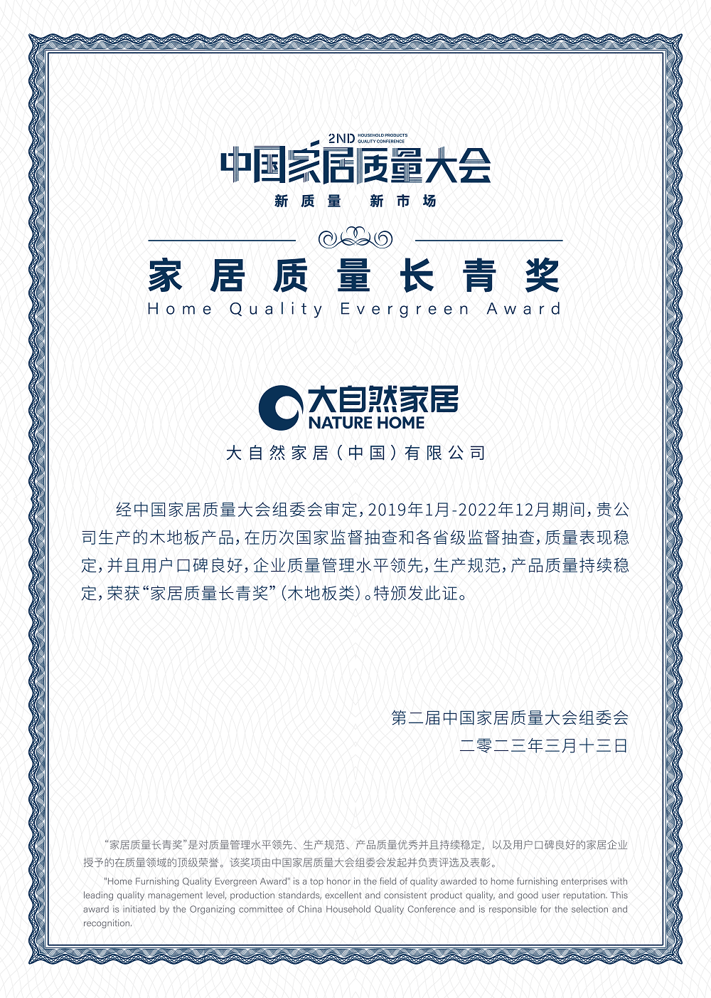 品質(zhì)長(zhǎng)青,大自然家居榮獲“家居質(zhì)量長(zhǎng)青獎(jiǎng)”